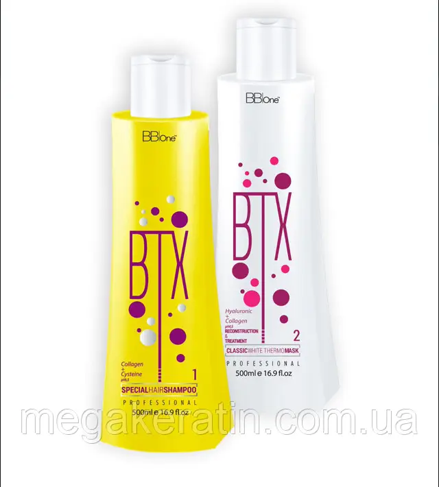 Всі продукти лінії BTX розроблені з використанням ексклюзивної технології DDA, що дозволяє ефективно відновлювати волосся, завдяки більш глибокому проникненню активних інгредієнтів та їх утриманню у внутрішній структурі волосся. Класичний набір Ботокс для волосся BTX Classic WHITE Thermo Mask без пігменту – максимально і глибоко відновлює всі типи волосся. Проникаючи в кортексний шар, продукт реконструює пошкоджені ділянки волосся, а також заповнює раніше втрачені поживні компоненти. Фіксує укладання, усуваючи пухнастість та неслухняність волосся. Надає блиску та щільності, не обтяжуючи волосся. За бажання, зберігає і структурує кучері. Час витримки – 10 хвилин. Дія: до 4 місяців