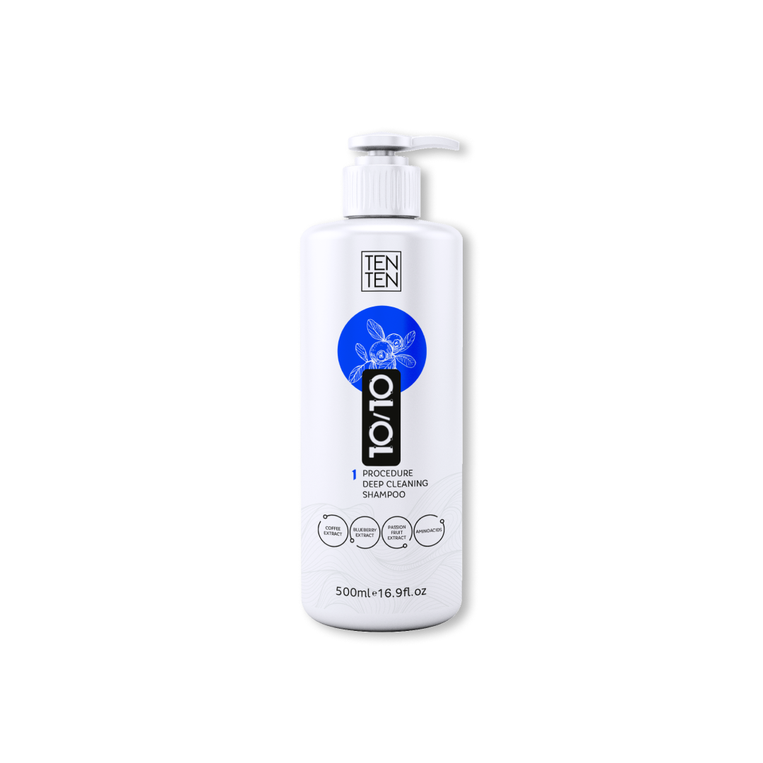 UA: Професійний шампунь глибокого очищення лінії 10/10 призначений для використання перед процедурами кератинового випрямлення та відновлення волосся. Ефективно очищає волосся від забруднень і стайлінгу, містить екстракти кавових зерен Арабіка, чорниці та маракуї, які сприяють відлущуванню верхнього шару епідермісу, а також споріднені з волоссям амінокислоти натурального походження, кератин та колаген, завдяки чому шампунь зміцнює волосся в процесі миття, готує його до нанесення наступних кроків.